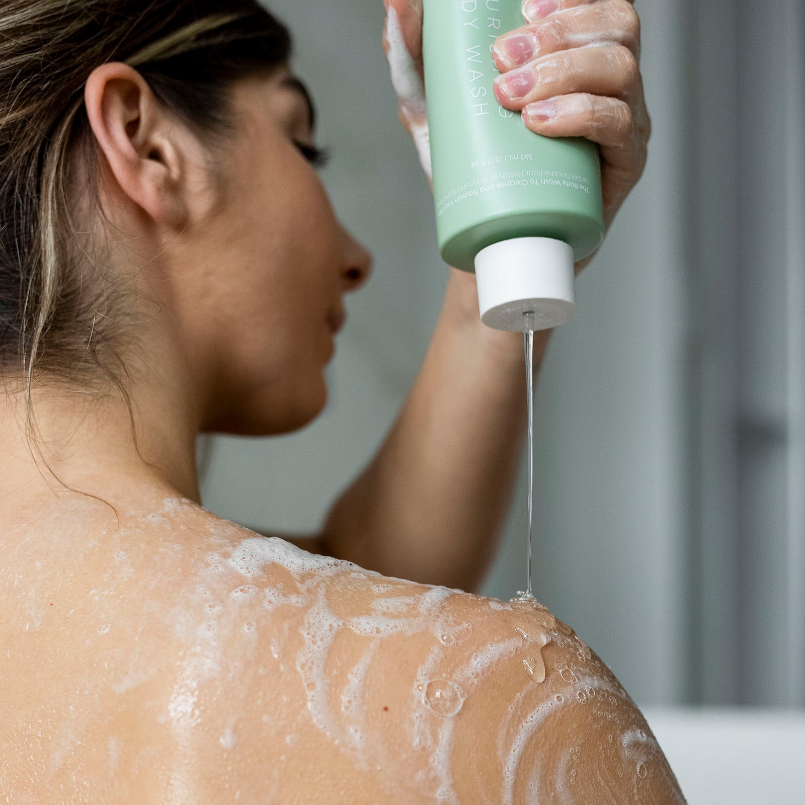 Rinse off: Once you've thoroughly cleansed your entire body, rinse off the body wash completely. Make sure no residue remains on your skin.