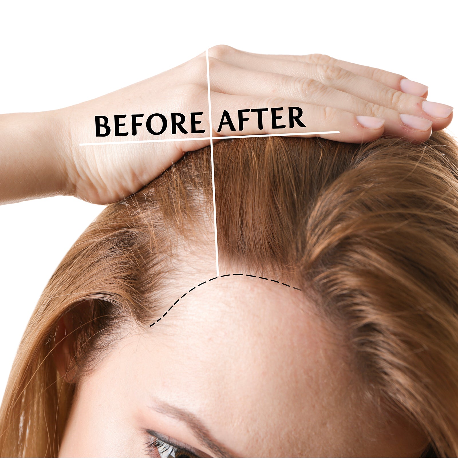 • Part the hair in the thinning areas and spray directly on the scalp. Just one or two sprays are enough for an area the size of your palm. For a larger area of thinning use 10-20 sprays to cover the entire scalp.